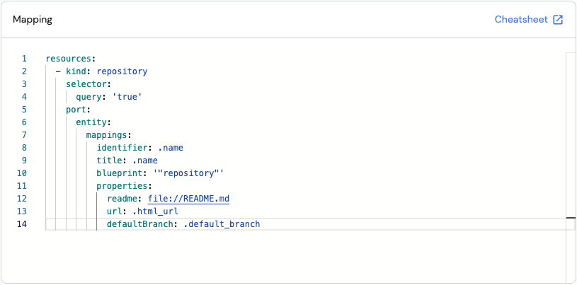 To see whichkindsare available for mapping, refer to the integration's documentation. In this example, the available kinds are listed in the Github integration page.resources: