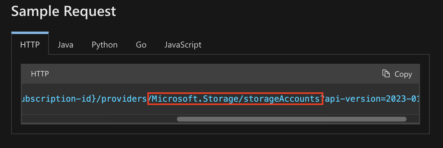 apiVersionfield is the Azure API version to use to fetch the resource. This field is required for all resources. For example, the API versions for thestorageAccountresource was found in the Storage Account Rest APIapiVersion: "2023-01-01"