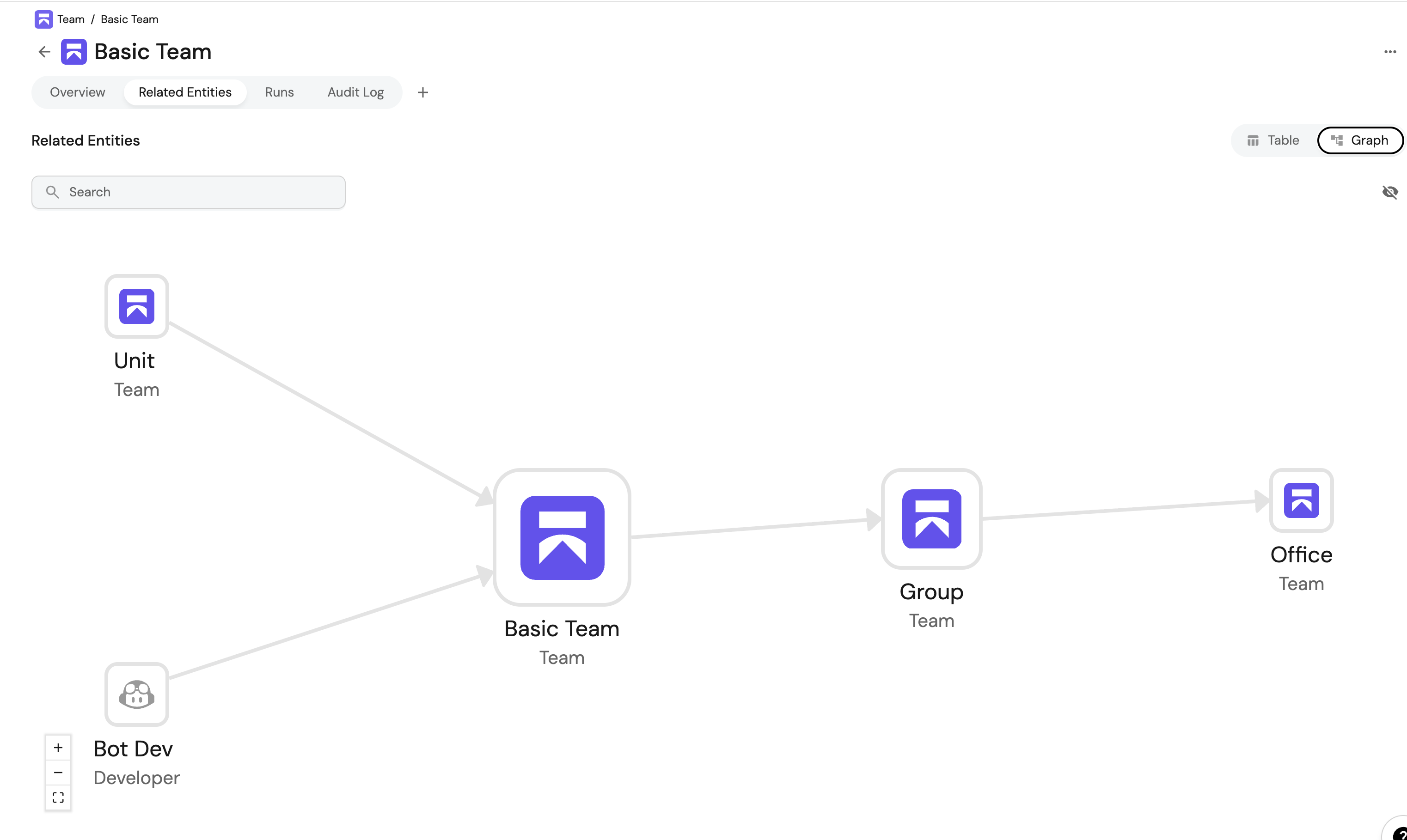 In this example, the system will traverse 2 fixed hops (Unit โ Basic Team โ Group) and then continue with up to 3 additional hops using the team_self_relation, starting from where the fixed hops left off. This could represent a complete organizational hierarchy from Unit all the way up to higher-level organizational structures.