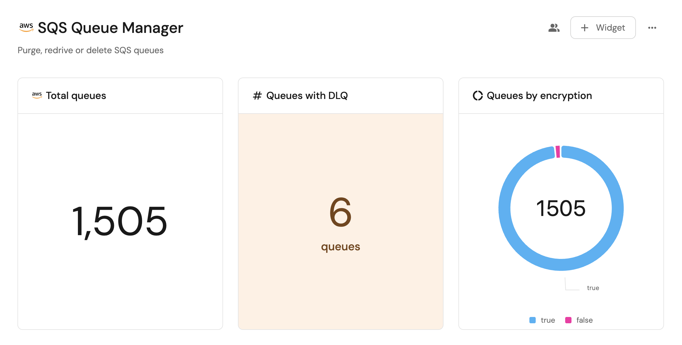 - Monitor the status and health of all SQS queues across accounts from a single dashboard.