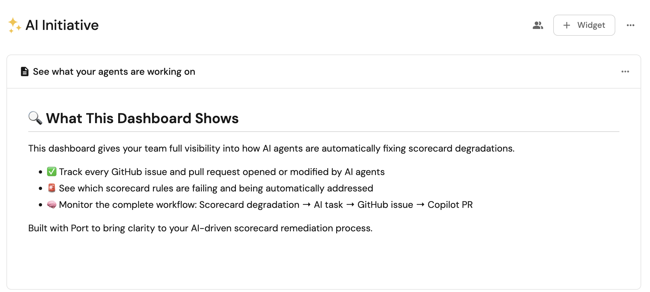 This automation bridges the gap between Port's AI agent analysis and GitHub's development workflow. It automatically creates detailed GitHub issues with remediation instructions, ensuring that scorecard degradation issues are properly tracked and actionable for development teams.