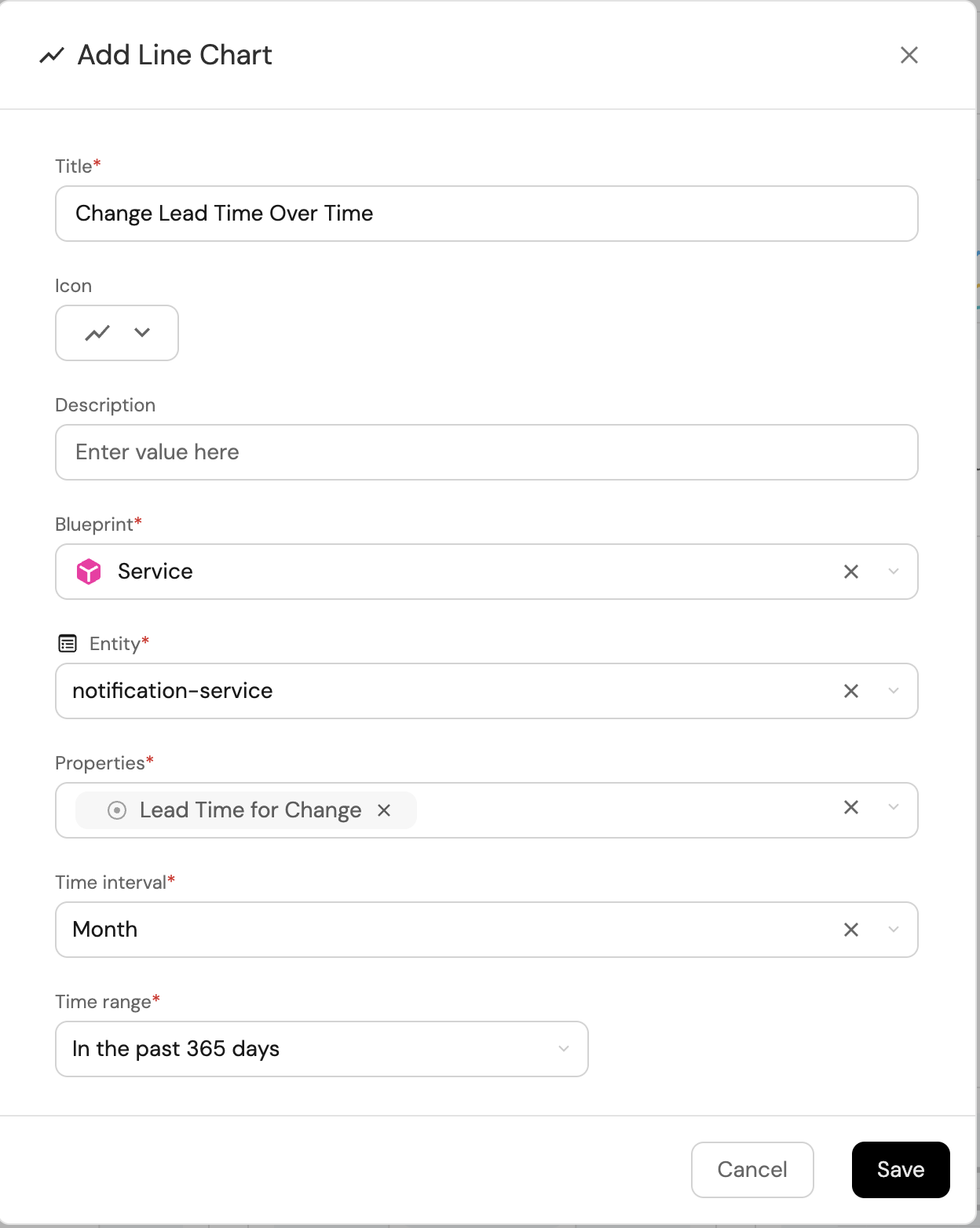 Change Lead Time Over Time, (add the LineChart icon). -