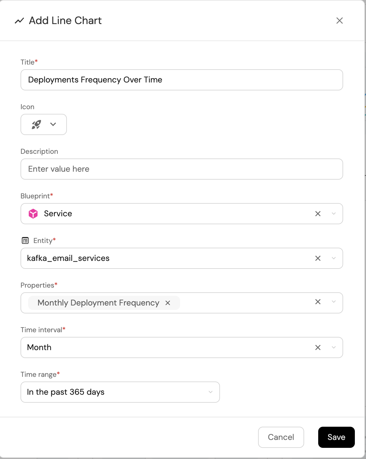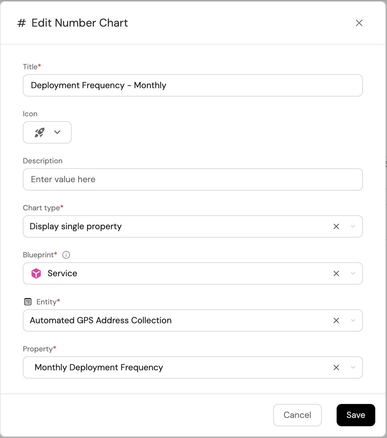 Deployment Frequency - Monthly, (add the rocket icon). -