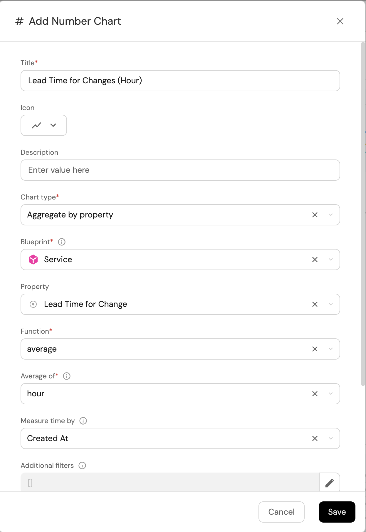 Add this aggregation property to calculate the lead time for changes:Lead Time for Change (click to expand)