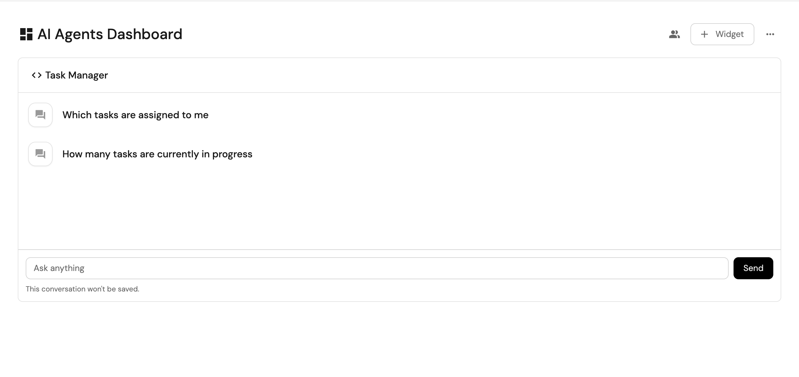The Task Manager AI agent can be accessed through an AI Agent widget in your Port dashboard.
