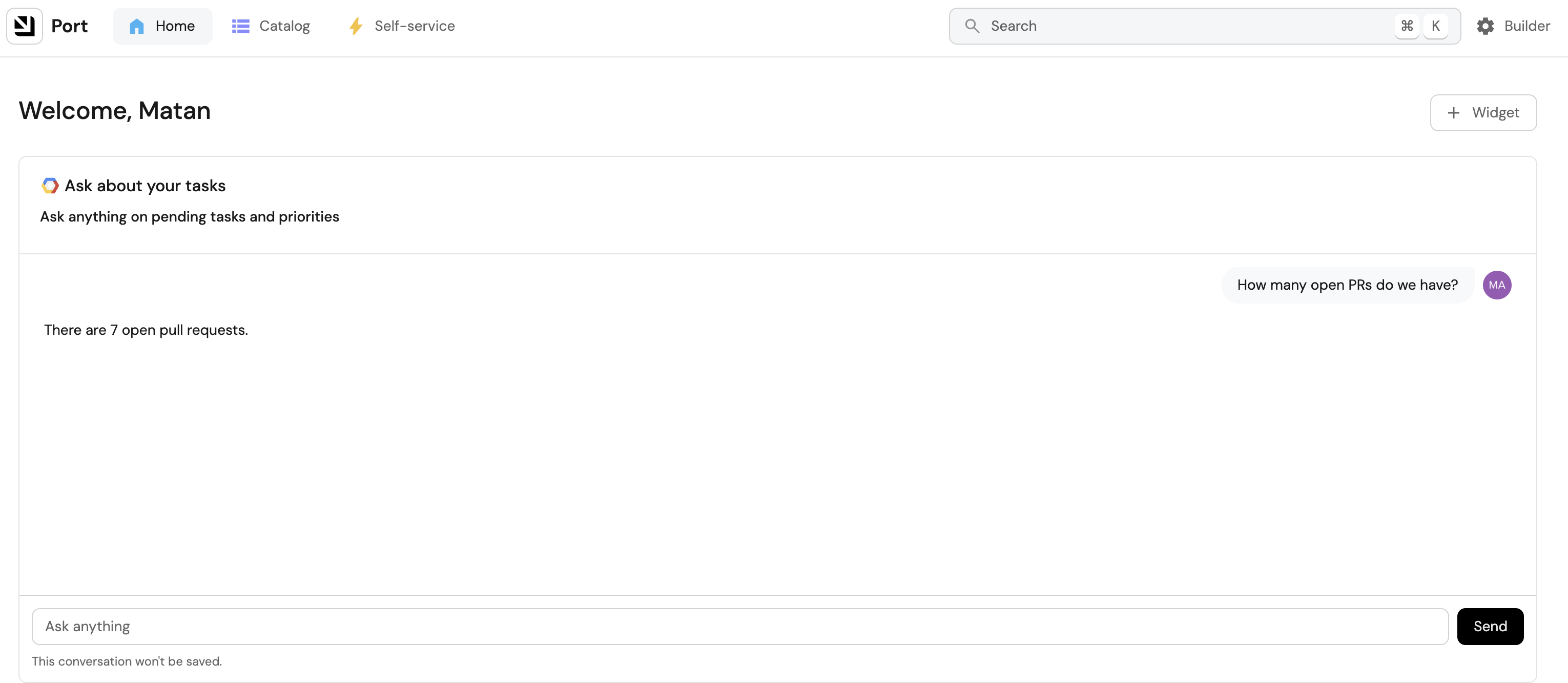 By the end of this guide, your developers will be able to get information about their tasks via Port's AI chat.