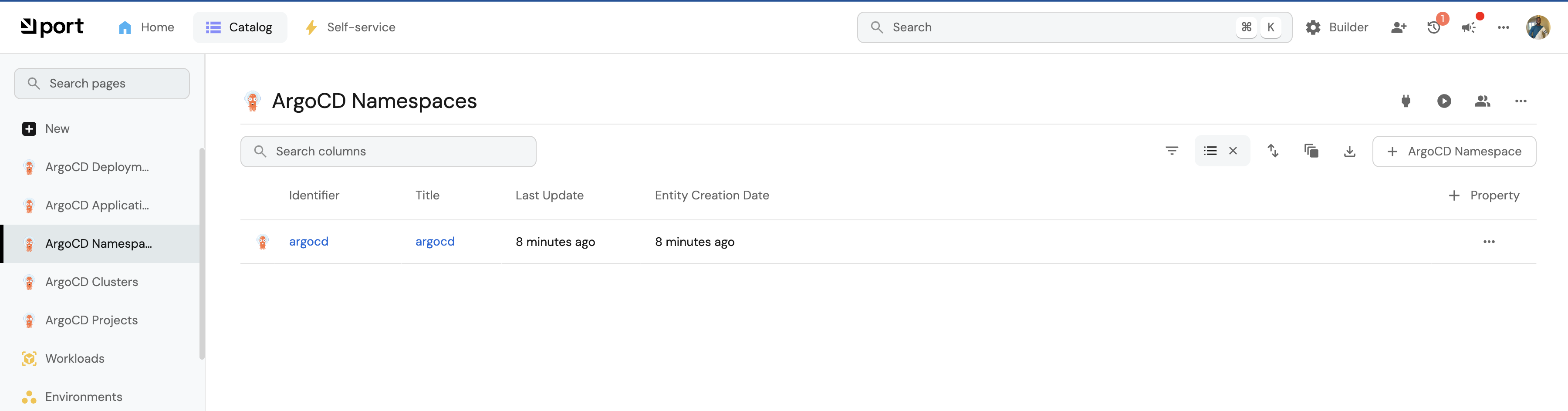 To visualize your Kubernetes deployment managed by ArgoCD in Port, we will first install Port's ArgoCD integration which automatically creates ArgoCD-related blueprints and entities in your portal.