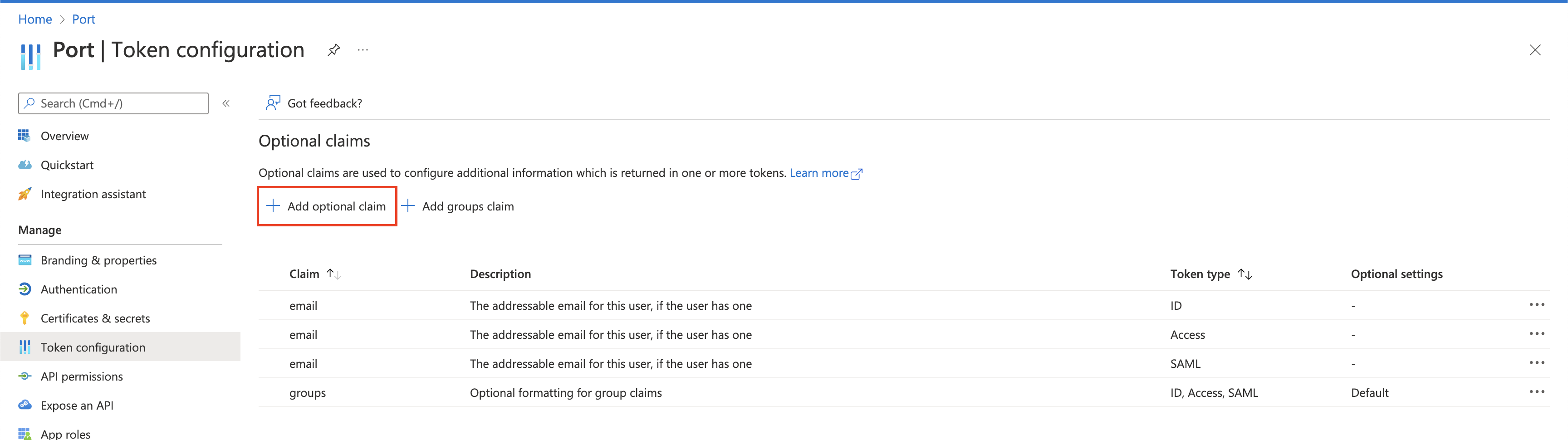 Your optional claims will look like this: